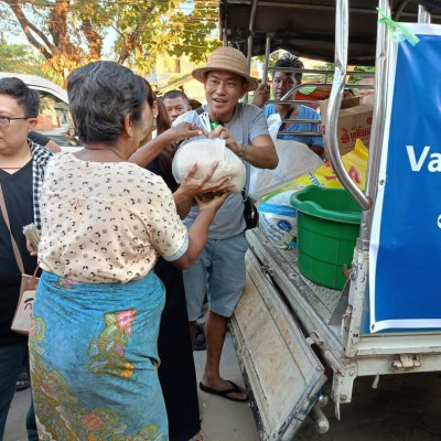 The Roger and Van Hall Foundation (USA)နဲ့ ဝေဠုကျော်ဖောင်ဒေးရှင်းတို့က အလှူရှင်တွေ ပူးပေါင်းပြီး ရန်ကုန်မြို့၊ မြောက်ဒဂုံမြို့နယ်က ကျူးမိသားစု ၂၇၀ စုနဲ့ အခြားနွမ်းပါးမိသားစု ၃၀ စုတို့အတွက် ဆန်နဲ့ အနွေးထည်တွေကို ဇန်နဝါရီ ၁၆ ရက်က လှူဒါန်းခဲ့တယ်လို့ သိရပါတယ်။