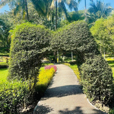 ပန်းခြံထဲမှာ အပင်တွေနဲ့ စိမ်းစိမ်းစိုစို၊ သန့်သန့်ရှင်းရှင်းရှိတော့အနားယူအပန်းဖြေလို့ကောင်းတယ် `ကြာရက်သွားလို့လားတော့မသိဘူးလူလည်းအရမ်းမရှုပ်ပဲရှင်းတာပဲ