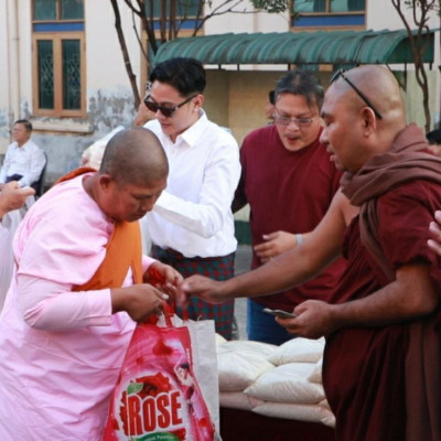 ပြာသိုလပြည့်နေ့ ရှင်တစ်ထောင်အခါတော်နေ့ သောတုဇနစာသင်သား သံဃာတော်တွေ၊ သီလရှင်တွေနဲ့ ဆိုက္ကားသမားတွေကို ဆွမ်းဆန်စိမ်း၊ အခြေခံစားသောက်ကုန်လှူဒါန်းမှုမှာ အနုပညာရှင်များလည်းပါဝင်လှူဒါန်းခဲ့