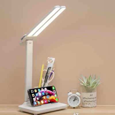 Eyes Protection Adjustable Study Table Twin Lamp Learning LED Desk Lamp USB Rechargeable Rotary Lamp Desk Light With Pen & Phone Holder