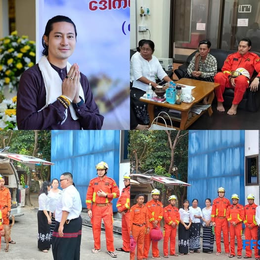 ငလျင်ဘေးဒဏ်သင့် ပြည်သူတွေကိုကယ်ဆယ်ရန် နာရေးကူညီမှုအဖွဲ့နဲ့အတူ မန္တလေးသို့ ထွက်ခွာလာတဲ့ ထွန်းကိုကို