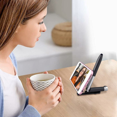ဒီစတိုင်လပ်စ်ဘောပင်မှာ ခေါက်သုံးလို့ရတဲ့ ဖုန်းရပ်စင်ပါရှိတာကြောင့် လက်မလွတ်ဘဲ အဆင်ပြေစွာ သုံးလို့ရပါတယ်။ ဗီဒီယိုကြည့်တာ၊ ဗီဒီယိုကော်လ်လုပ်တာ၊ စာသင်တာတွေမှာ ဖုန်းကို အလွယ်တကူထောက်ထားနိုင်ပါမယ်။ ကျောင်းသားတွေ၊ အလုပ်လုပ်သူတွေအတွက် အထူးအဆင်ပြေမှာပါ။ အခုပဲ မှာယူပြီး သင့်နေ့စဉ်ဘဝကို ပိုမိုအဆင်ပြေလာအောင် လုပ်လိုက်ပါ။